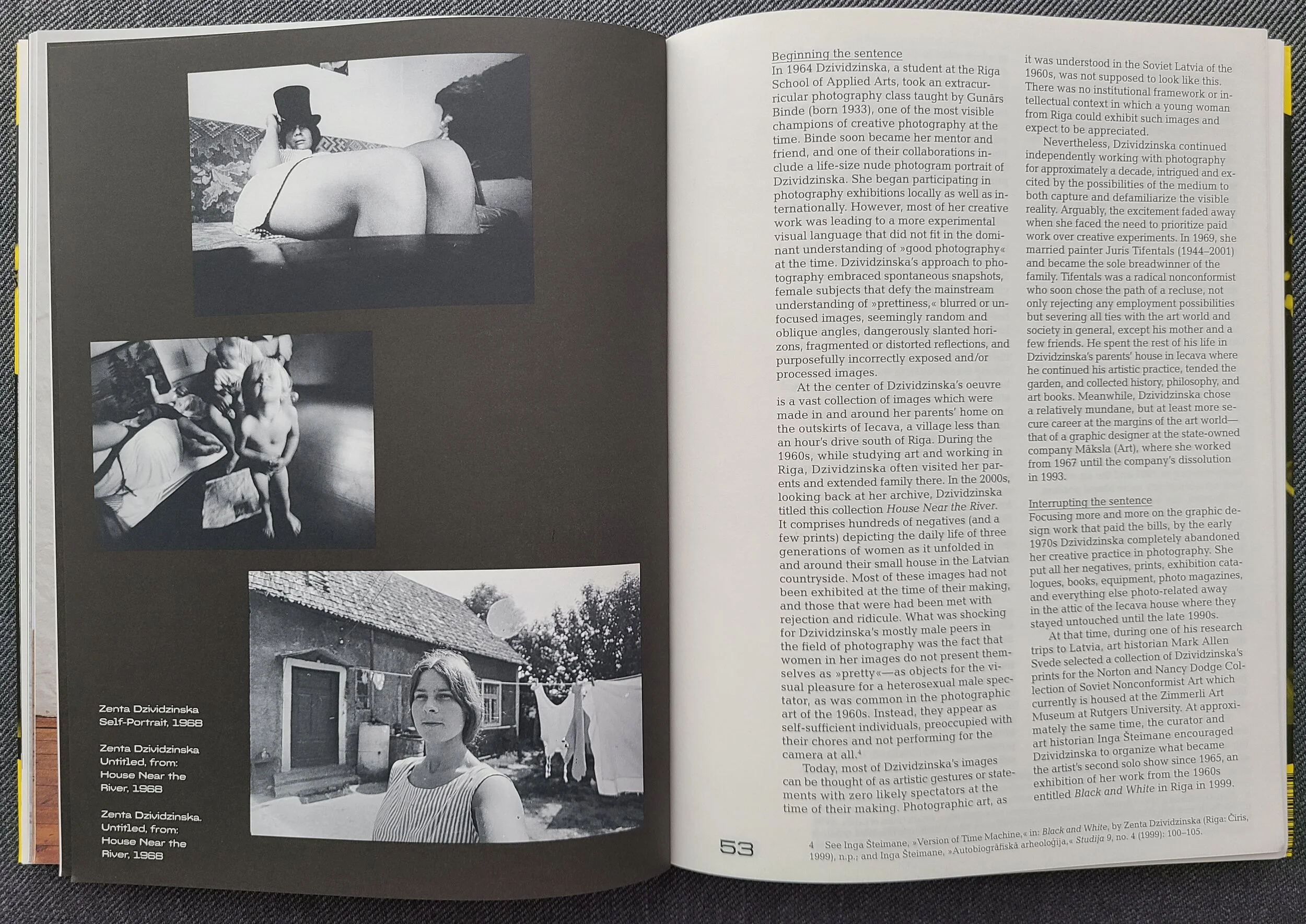 Alise Tifentale, “Completing an Unfinished Sentence: On the Collaboration between Sophie Thun and the Archive of Zenta Dzividzinska,” in Sophie Thun. Trails and Tributes, edited by Christin Müller and Torsten Scheid. Hildesheim: Kunstverein Hildesheim and Verlag für moderne Kunst, 2023: 49-55.